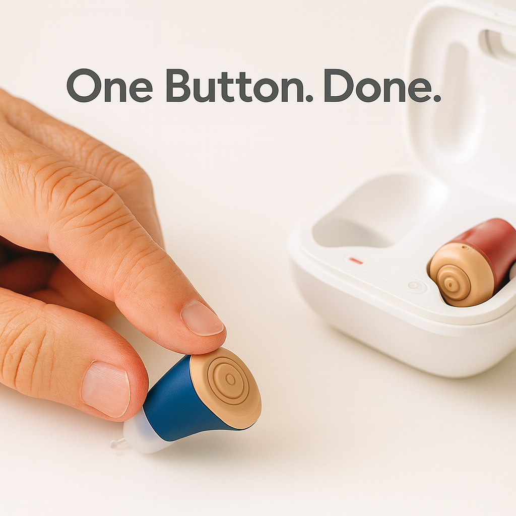 First evening wearing them I could follow dinner conversation with no “Huh?” moments. Open the case, pick a tip, tap the button up — that’s it. Voices stay clear while the room still feels natural.