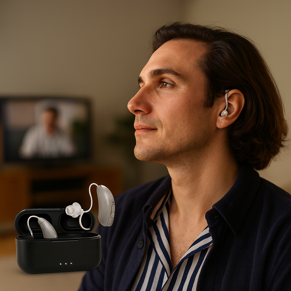 The first evening I wore these I could follow our family dinner without asking people to repeat. Voice-Focus lifts speech while the room still sounds natural. Setup was simply open the case, fit the tip, and nudge the rocker up from low—no app needed.